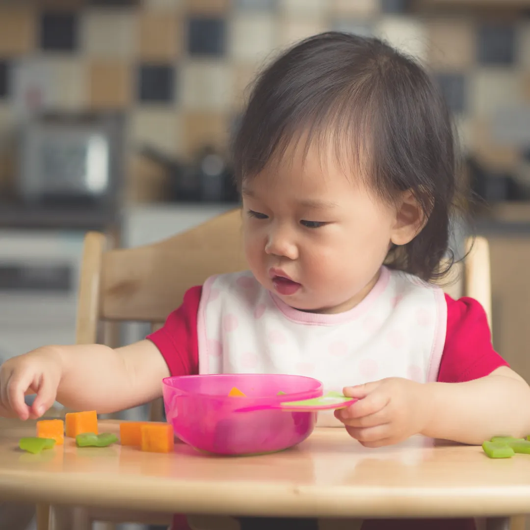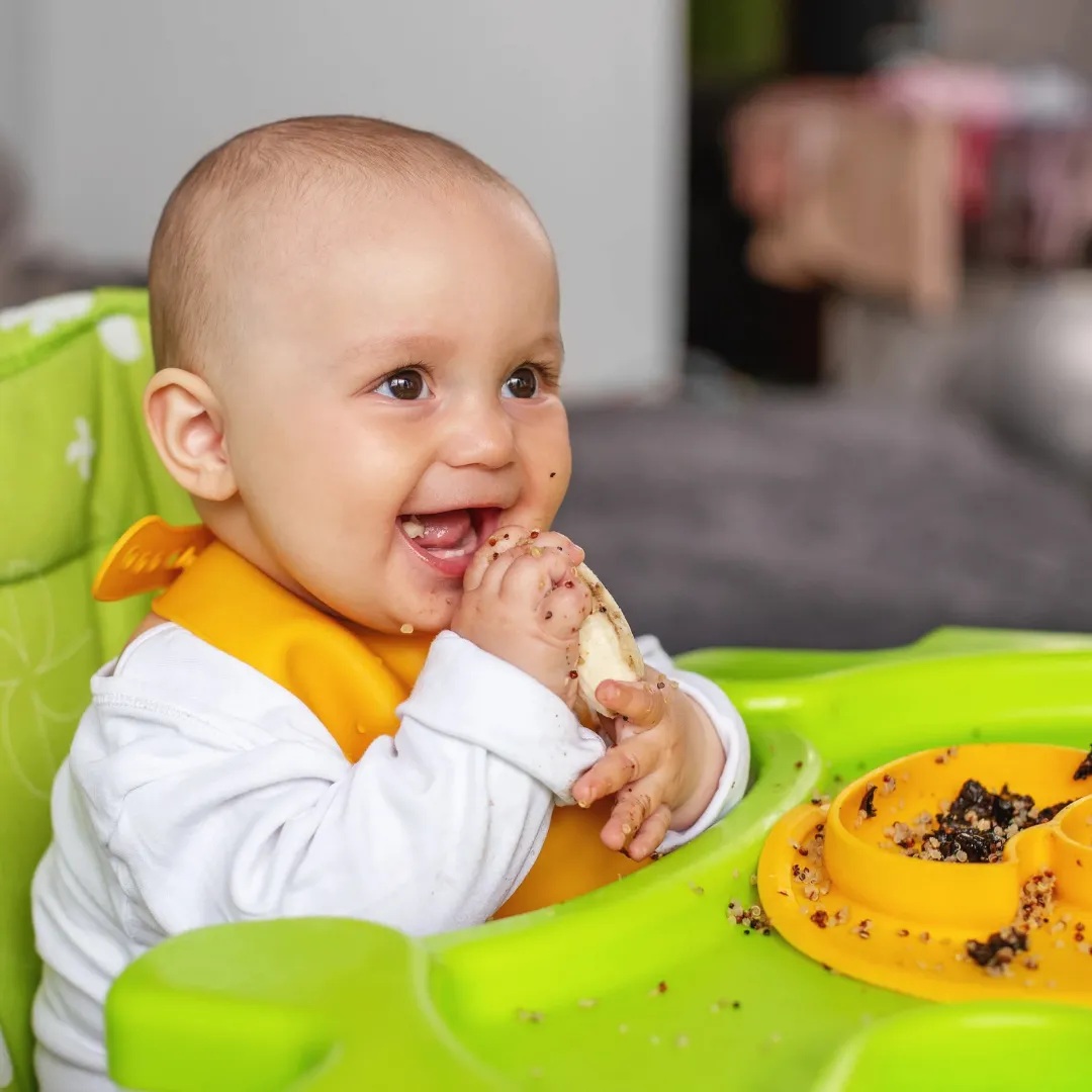 A calm, responsive adult helps a baby feel safe enough to explore food at their own pace.